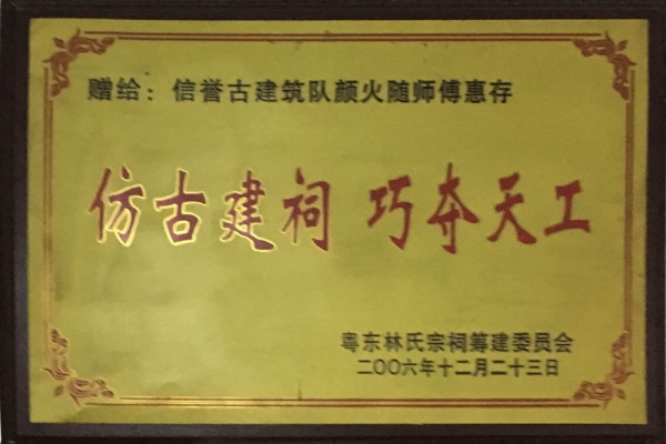 汕尾市信譽古建筑工程有限公司,是一支繼承和發(fā)揚潮汕民間傳統工藝文化的仿古建筑團隊。公司秉承“信者,行于天下”的理念,以“傳承與發(fā)展,建筑與藝術,歷史與文化”為宗旨,為各界朋友提供專業、誠信的服務,精誠合作,共同發(fā)展。 汕尾市(海陸豐)信譽古建筑工程有限公司擁有泥工、木工、石工、饒工、油工等齊全的專業技術工種,團隊主要工種成員都是傳統古建筑專業民間工藝師,承接項目眾多,技藝高超。團隊領導顏火隨,是潮汕海陸...[詳細]